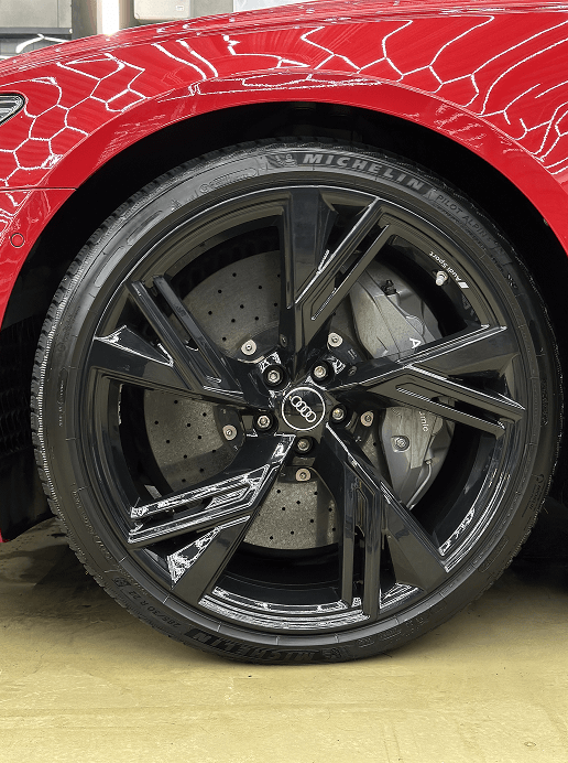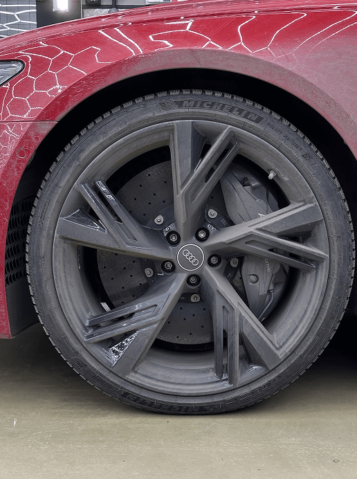 Помимо оклейки кузова и покраски дисков, была выполнена химчистка салона, реставрация кожи, мойка двигателя, мойка арок со снятием подкрылок, на плёнку нанесён керамический состав.